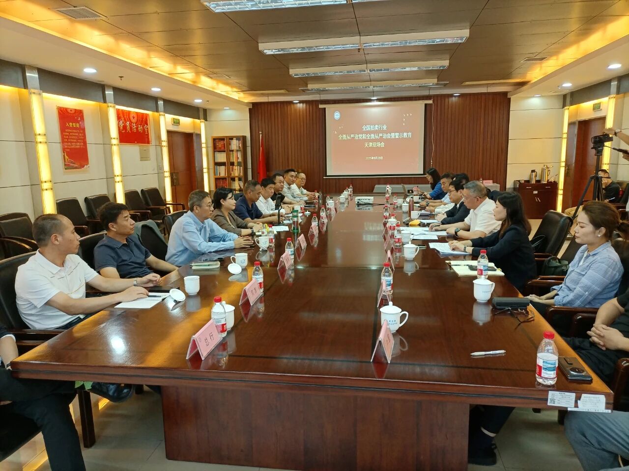 9月29日上午,中国拍卖行业协会召开全国拍卖行业全面从严治党和全面从严治会暨警示教育天津现场会,中拍协会长王波、副会长兼秘书长贺慧、中拍协特邀副会长、上海拍协会长刘建民、河北拍协会长蒋旭、天津拍协党支部书记张宝栋、天津拍协会长张贤军及天津拍协全体理事单位出席会议,会议由贺慧主持。