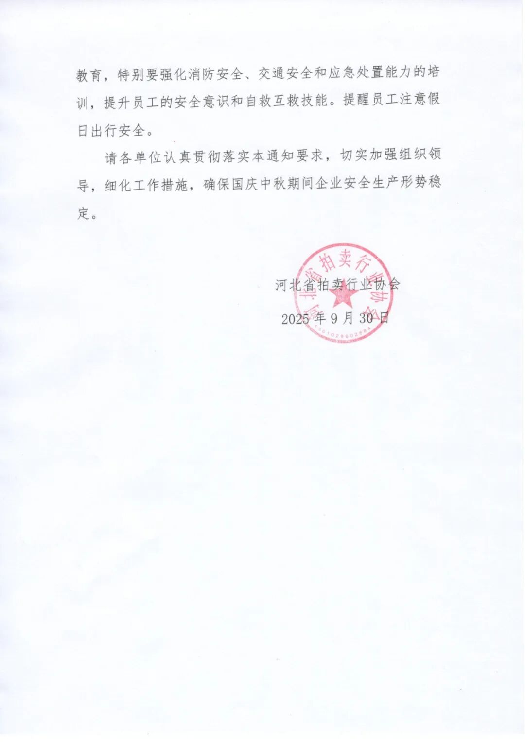 关于落实做好国庆中秋假期安全生产工作的通知