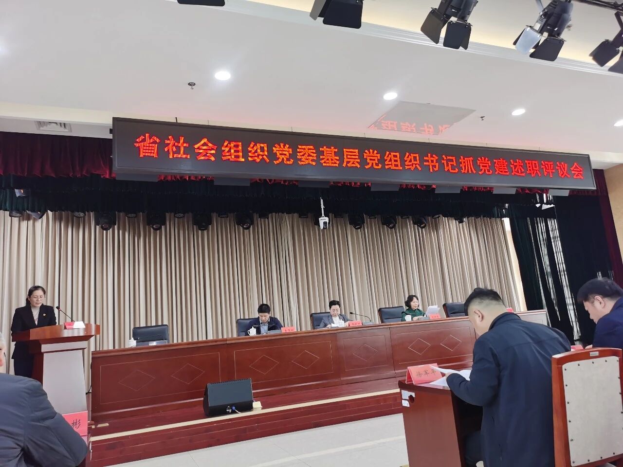 会议听取了4位基层党组织书记关于年度党建工作履职情况、工作成效、问题短板及下一步计划的述职汇报。省民政厅党组成员、副厅长,省社会组织党委书记张晓妍逐一点评,并对后续党建工作进行部署。蒋旭书记在参会期间,深入学习了基层党建述职评议考核的标准与要求,并借鉴了其他协会党建工作的经验做法。