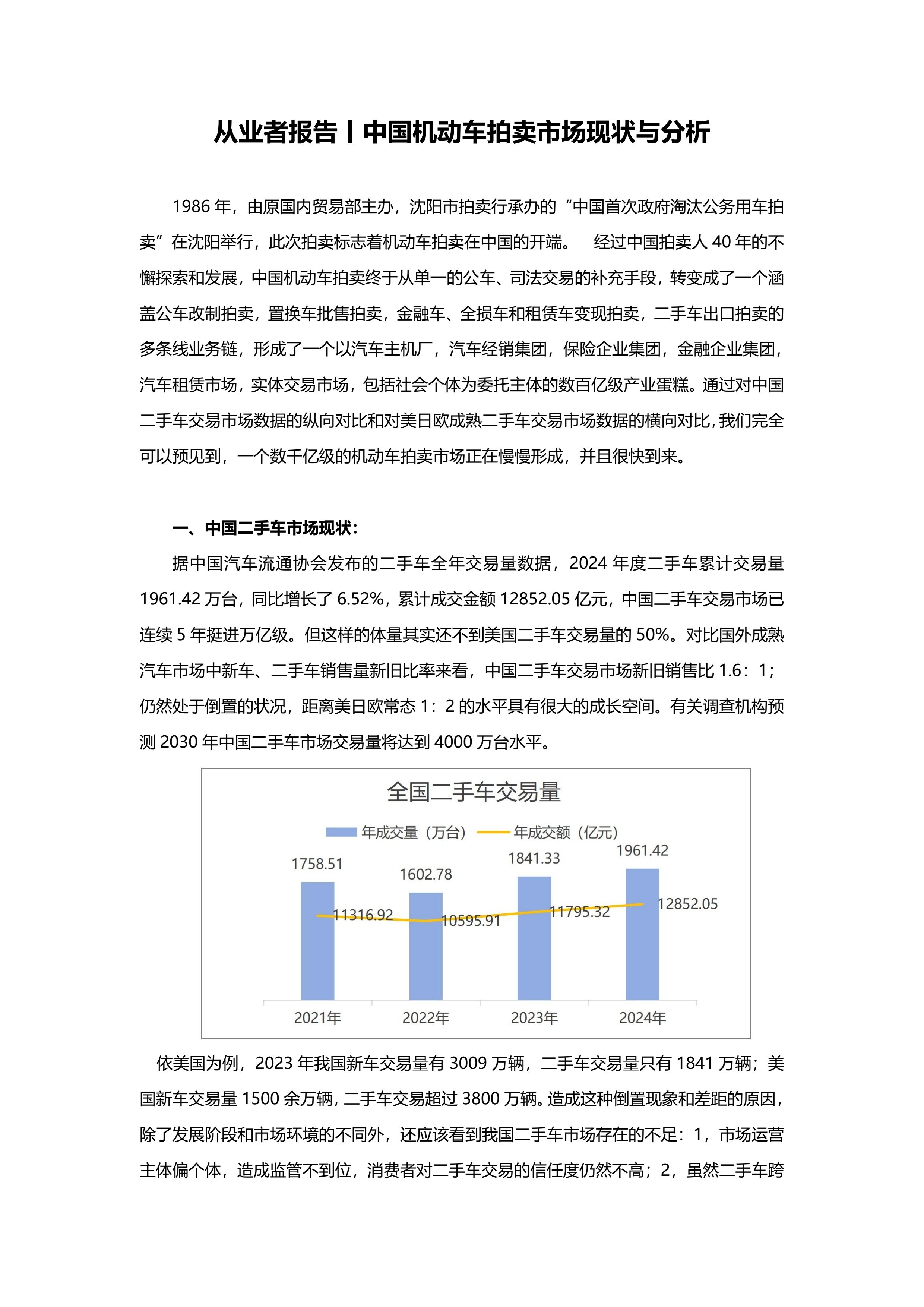 首页 > 行业要闻 > 从业报告/中国机动车拍卖市场现状与分析