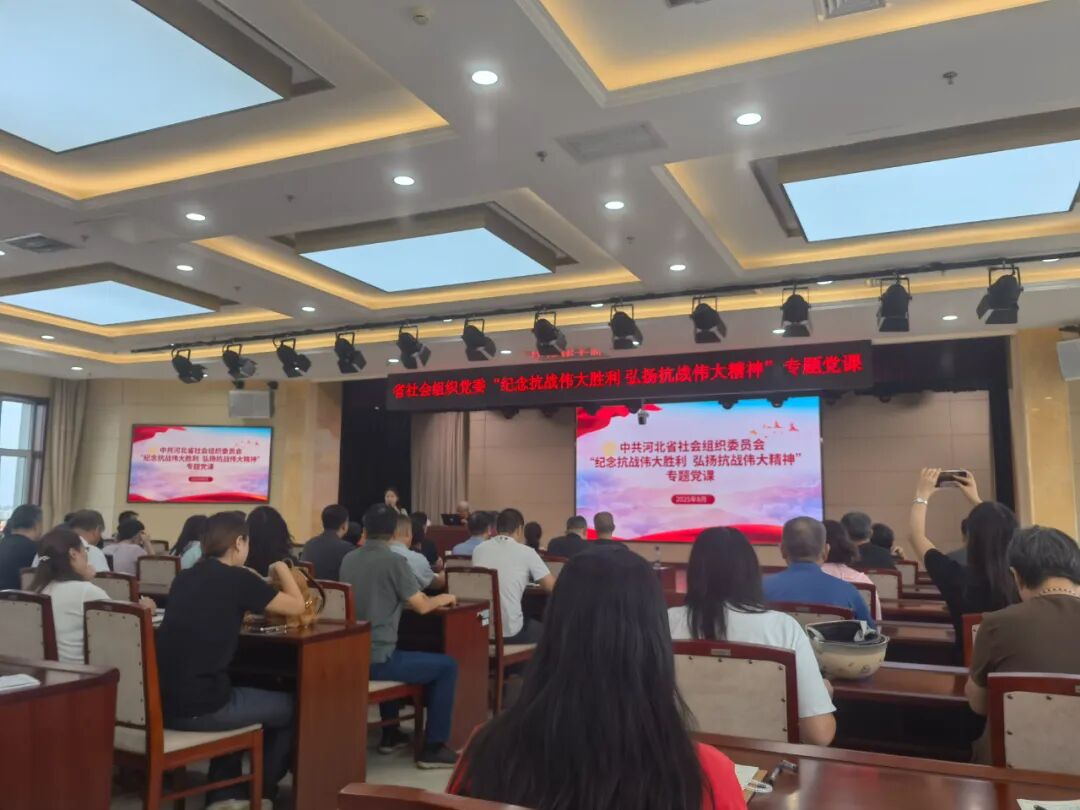 2025828日下午,在纪念中国人民抗日战争胜利80周年之际,为深切缅怀革命先烈、传承伟大抗战精神,进一步激发全体党员的爱国热情与使命担当,引导大家铭记历史、珍爱和平、砥砺奋进、开创未来,不断夯实社会组织党组织建设,省社会组织党委开展了“纪念抗战伟大胜利 弘扬伟大抗战精神”专题党课。