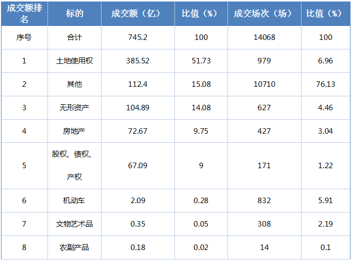 1. 房地产类:呈现“量价齐升”的稳健增长态势,1-9月成交场次427场,同比增长19.94%;成交额72.67亿元,同比增长51.85%。成交额的增势一方面源于房地产标的质量提升,优质住宅、商业地产等标的成交占比上升,另一方面与部分区域房地产市场回暖、投资性需求及资产配置需求有关。