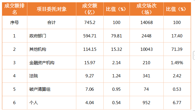 5.其他机构委托:1-9月份成交场次10043场,同比增长35.08%;拍卖成交额114.15亿元,同比增长38.88%。其他机构委托的拍卖业务增长最为显著,无论是成交场次还是成交额都呈现出高速增长的态势,反映出市场上其他机构对拍卖这种资产处置方式的认可,其他机构自身的业务发展的同时带动了委托拍卖业务的增长。